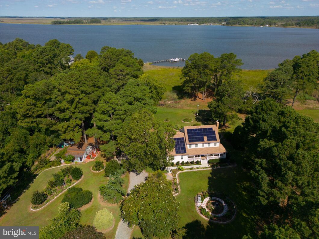 Welcome to this beautifully landscaped, lovingly cared for charming property! This property has been updated with sustainability in mind. As you pull into the driveway you’ll be enveloped in the lush, manicured but low-maintenance grounds. To the left is a shed/workshop including a greenhouse and private garden with wind barrier for the colder months. The shed is equipped with electric , a sink and tool shed/lawn mower storage area. On the other side of the property is an orchard with a variety of fruit trees ( +50). An (manual low cost ) irrigation system has been installed to keep all flower beds and the orchard watered. As you approach the entrance of the house, you will be welcomed by a wraparound front porch which leads to the back yard. Get ready for awesome views of the water and venture your way around to the outdoor back patio area and further out to the pier and boat slip with river access. As you enter through the front door, to the right of the stairway, you will find a sizeable living room with a gas fireplace. Double doors lead to the year-round patio on the back of the house which has been upgraded with new windows all around, ceiling fans, heat and air. Continuing through the first floor, you’ll find the dining and kitchen areas. The kitchen has been updated with new stainless appliances, granite counters and tile backsplash. Around the corner, you’ll find the laundry area, half bath, garage entrance and 2nd stairway which could be (fitted) converted with a chairlift for handicap accessibility. Upstairs you’ll notice the newly installed engineered hardwood flooring, 4 bedrooms, 2 full bathrooms, and a sunroom overlooking the back of the property and providing amazing views of the water. The fully insulated 2 car garage includes shelving, a deep sink with hot/cold water, and an insulated area for the water heater and water treatment system. Homeowner has gone to great lengths to make upgrades to so many areas of this home and surrounding property, it really is a must-see!